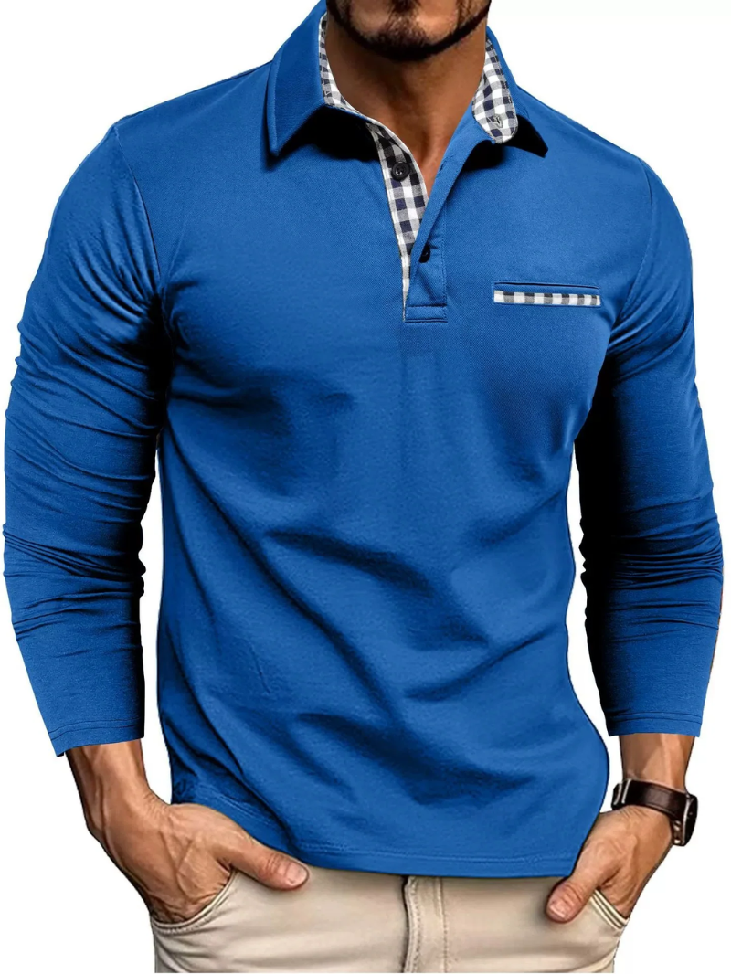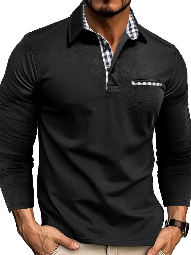Herr långärmad pikétröja tillverkad av bomullsblandning. Långa ärmar ger extra skydd på svalare dagar. Denna pikétröja passar bra till en mängd olika stilar och kläder.