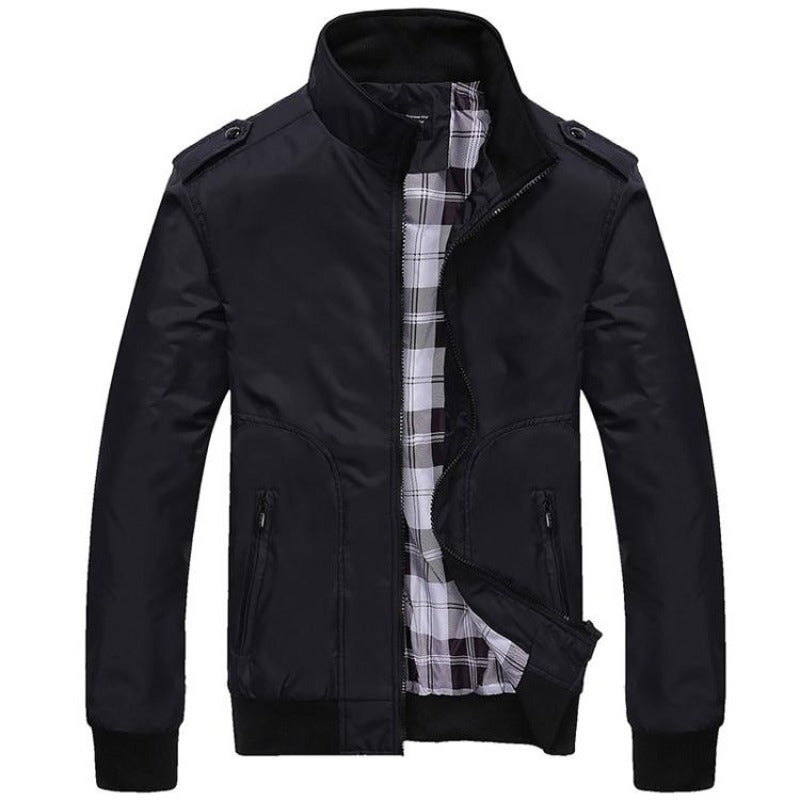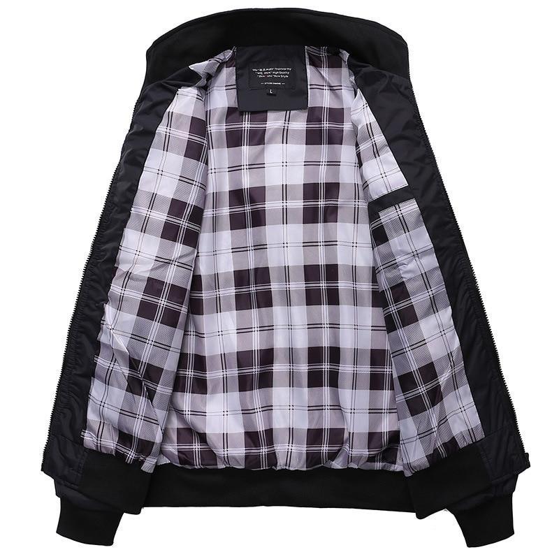 Denna herrjacka med rutigt foder är tillverkad av ett tyg som passar för vardagsbruk. Den har en klassisk dragkedja och ett rutigt foder för en distinkt look. Ytterligare funktioner, som sidofickor och elastiska muddar, kompletterar jackans praktiska design.