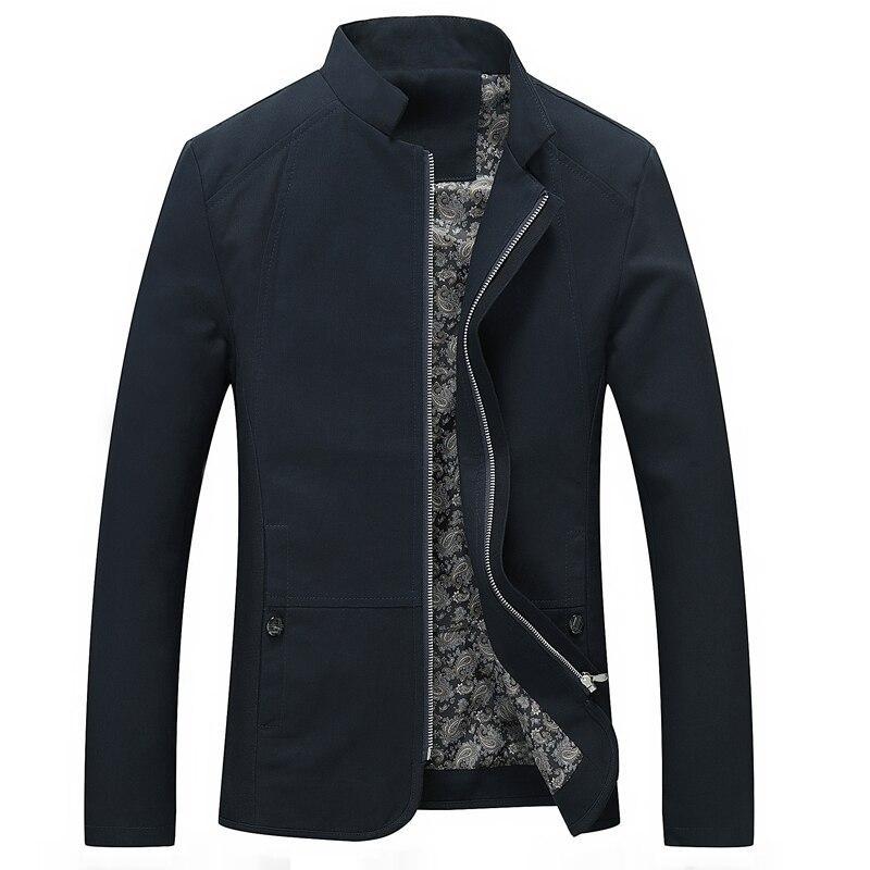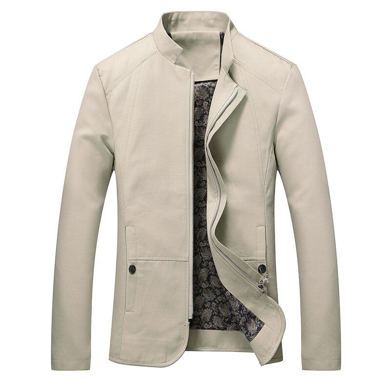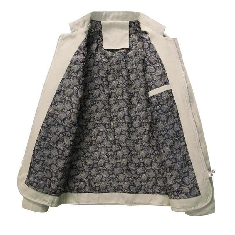 Herrjacka med rak passform och ståkrage. Jackan har dragkedja framtill och är försedd med både yttre och inre fickor. Den släta ytan och de raka linjerna ger ett stilrent uttryck. Fodret har ett diskret mönster som tillför en elegant detalj.
