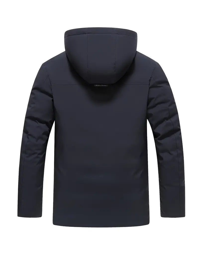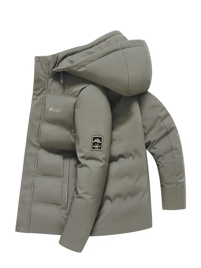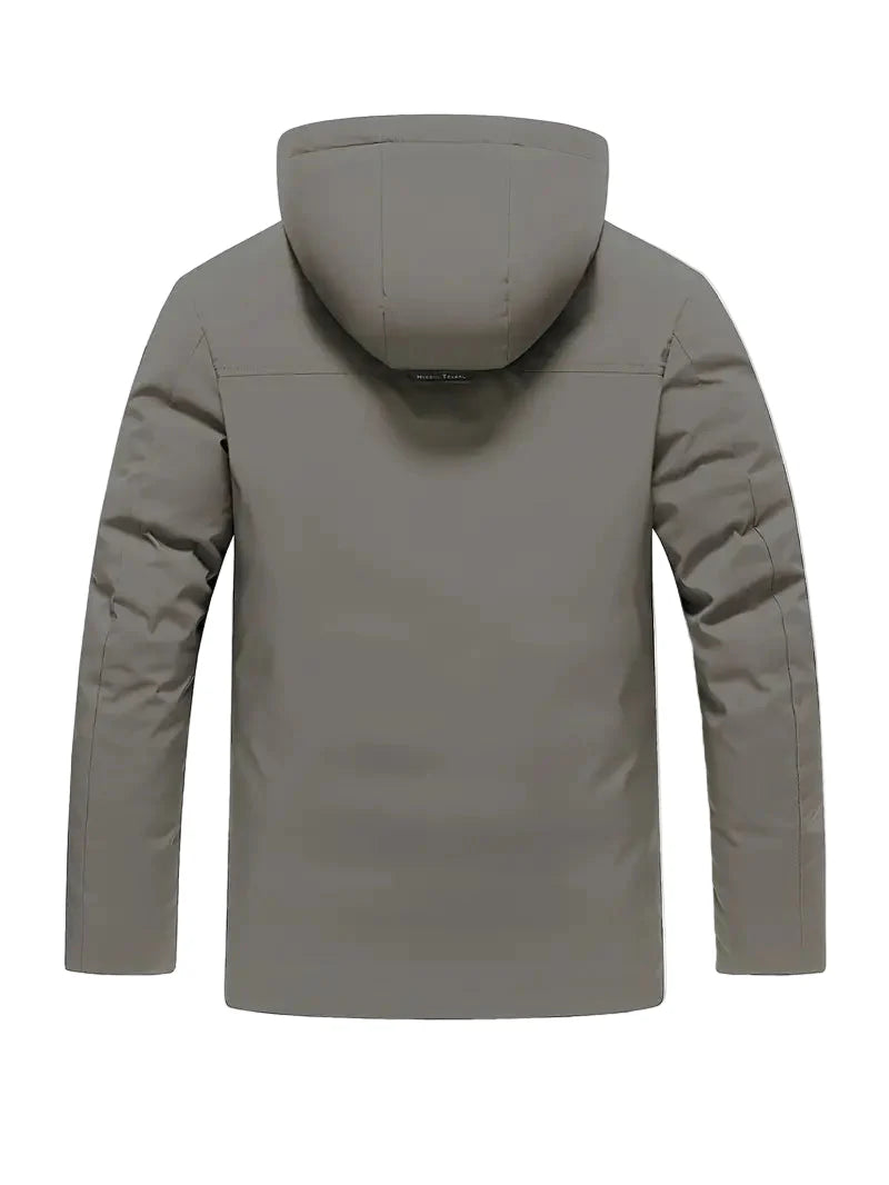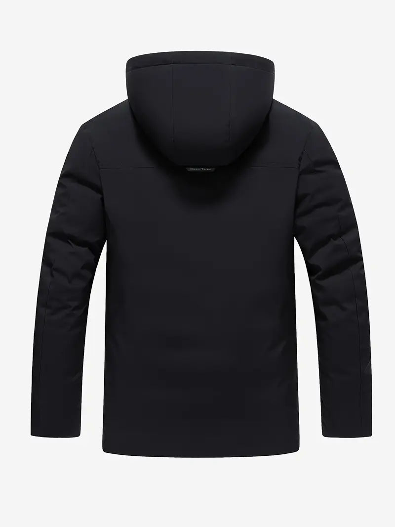 Herrvinterjacka med klassisk skärning och ståkrage. Jackan har dragkedja, långa ärmar och fickor med dragkedja. Den lösa passformen ger rörelsefrihet och den avtagbara huvan möjliggör mångsidiga bäralternativ.