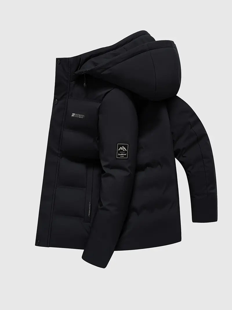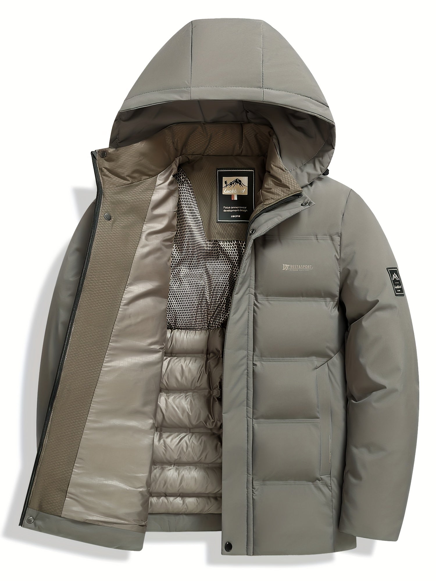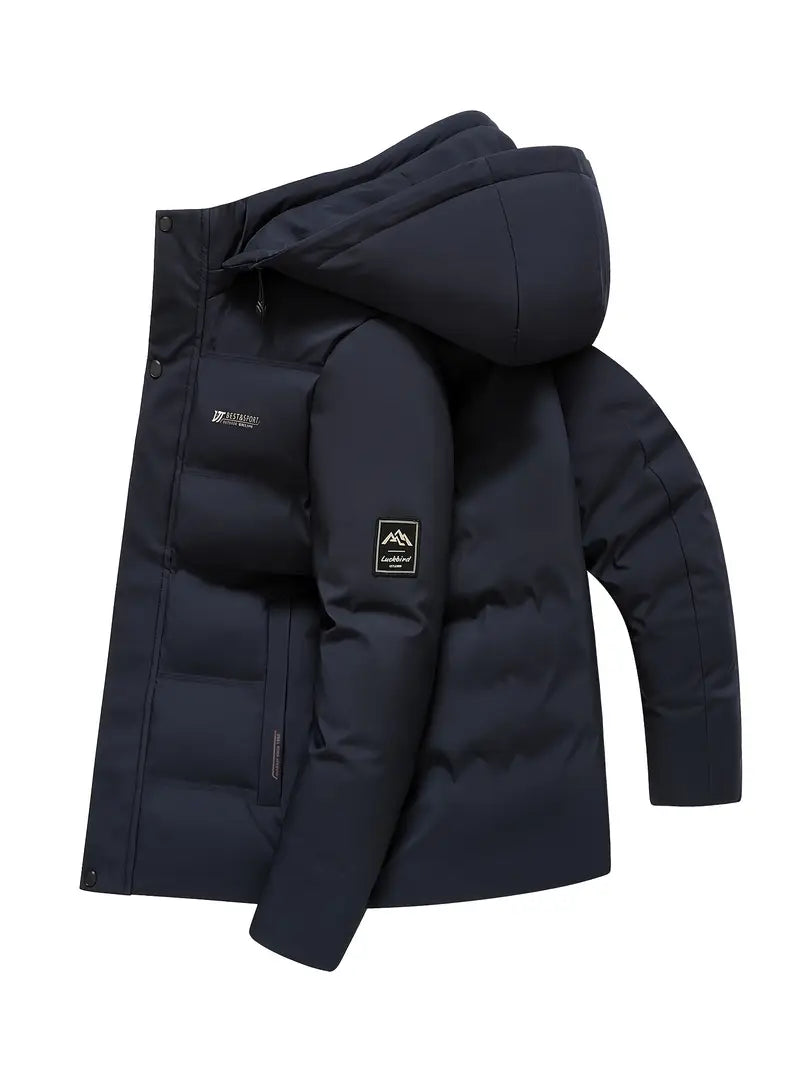 Herrvinterjacka med klassisk skärning och ståkrage. Jackan har dragkedja, långa ärmar och fickor med dragkedja. Den lösa passformen ger rörelsefrihet och den avtagbara huvan möjliggör mångsidiga bäralternativ.