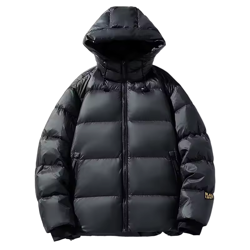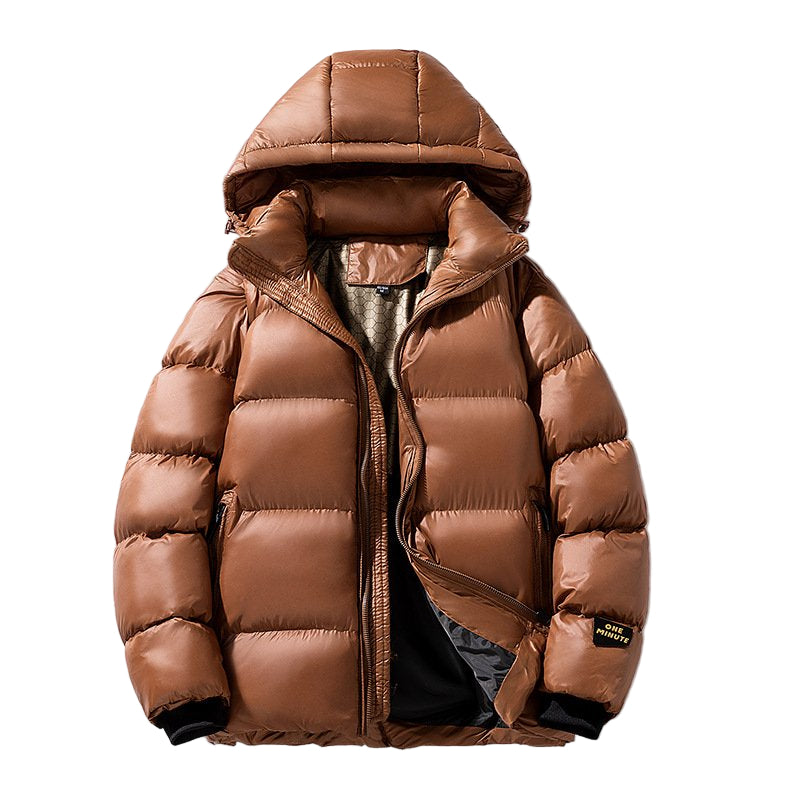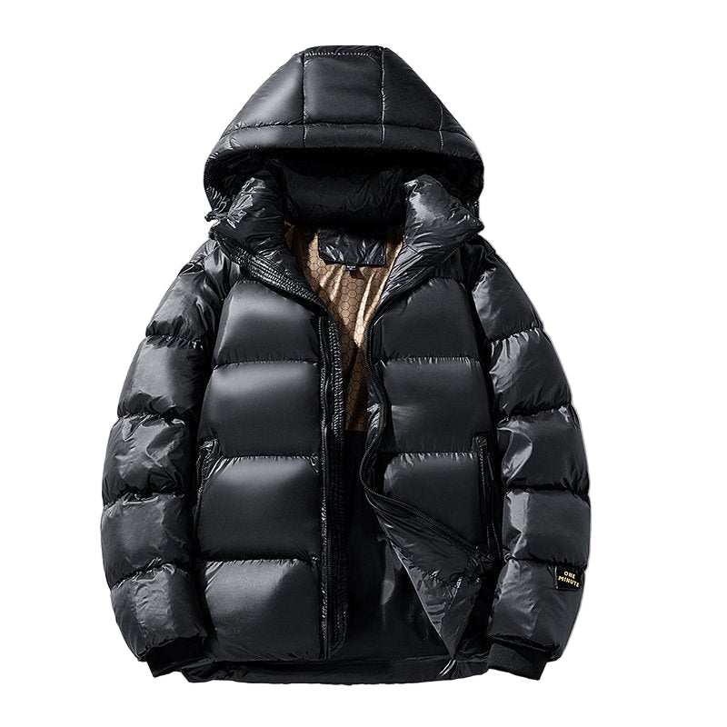 Denna isolerade herrjacka är tillverkad av ett slätt texturerat tyg. Den har en huva och en rak passform med en längre bakfåll. Den har en dragkedja fram och praktiska fickor. Elastiska muddar och fåll är färdiga.
