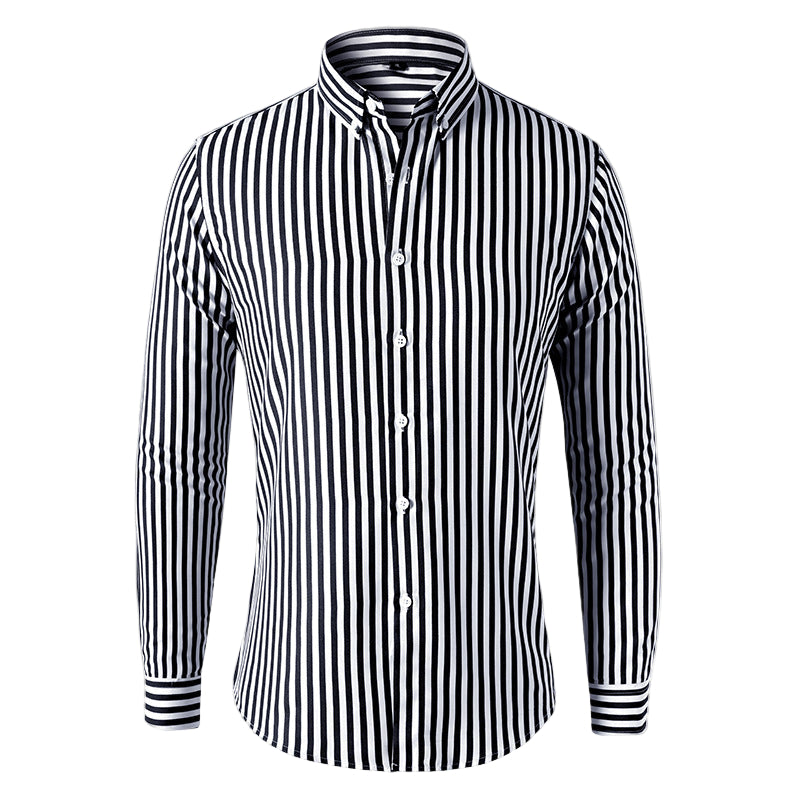 Randig skjorta för män med randigt mönster. Modellen har en rak och något lösare passform med klassisk krage och knappstängning framtill. Konstruktionen har en enkel struktur med raka linjer.